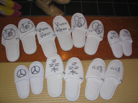 館内では専用のスリッパに履き替え名前を書きます。